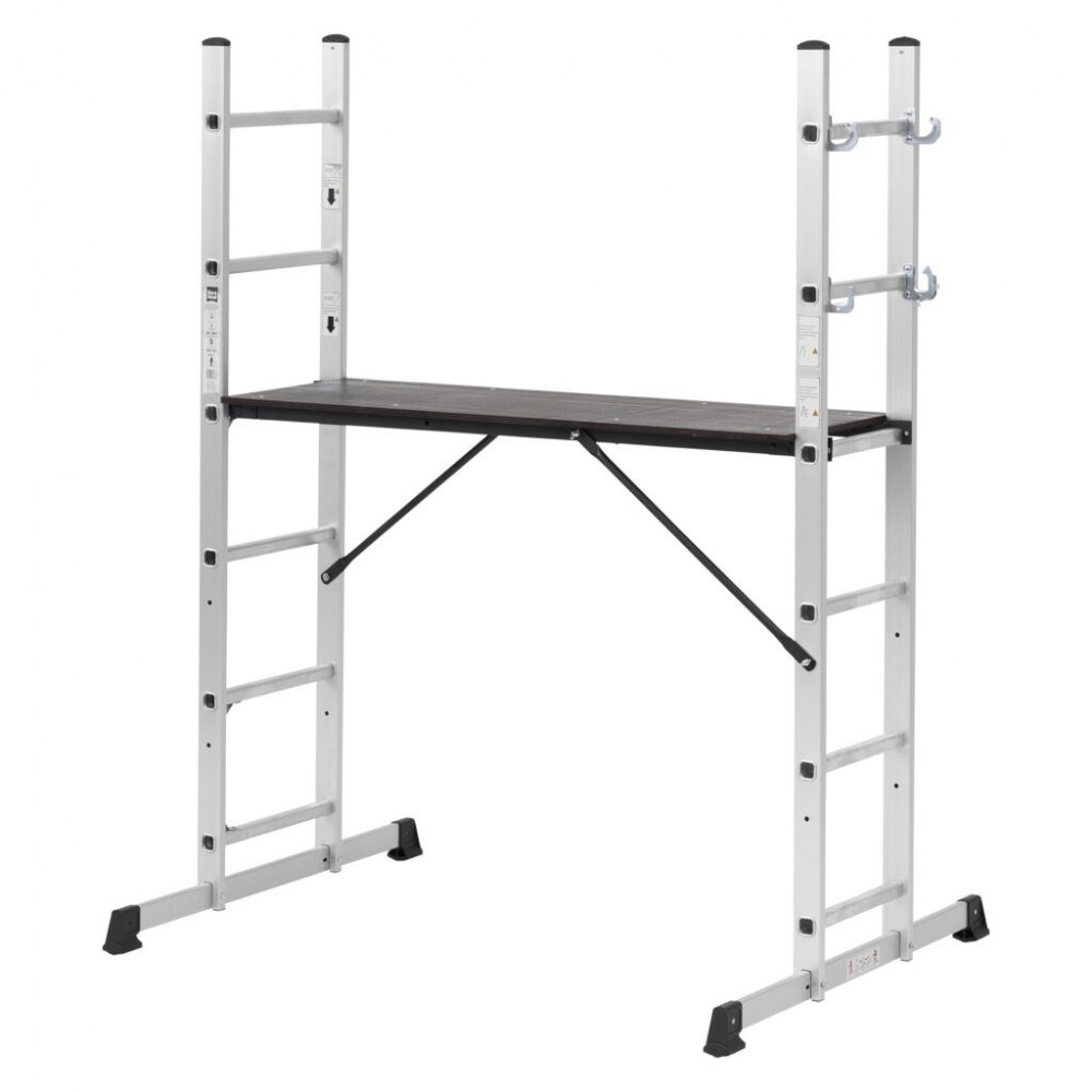 Połączenie drabiny kombinowanej wraz z platformą roboczą w jednym.